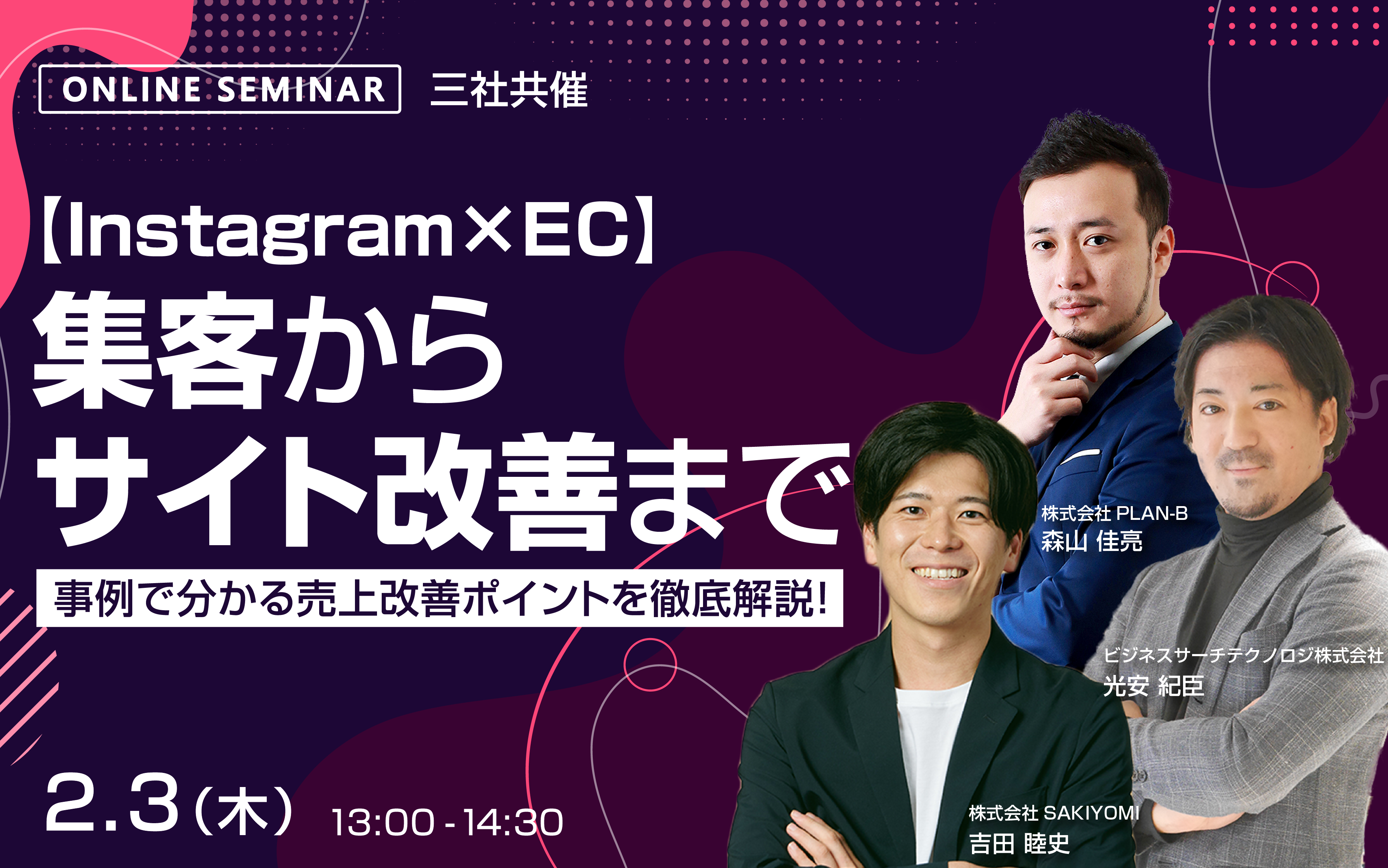 そこで本セミナーでは、成果の出るInstagramの活用とECサイトのCVR改善の方法を事例やデータを交え解説いたします!