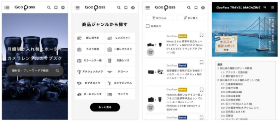 カメラブは、プロのフォトグラファーからカメラを趣味とするユーザーまで幅広い層を対象に、カメラのサブスクリプション(月額定額制)サービスである「GooPass※」を提供しております。またカメラ撮影の体験機会を提供し、広く認知されていない地域の魅力を写真や映像を通じて発信することにより、観光需要の創出、関係人口創出に繋げるべく、さまざまな自治体との連携を進めています。