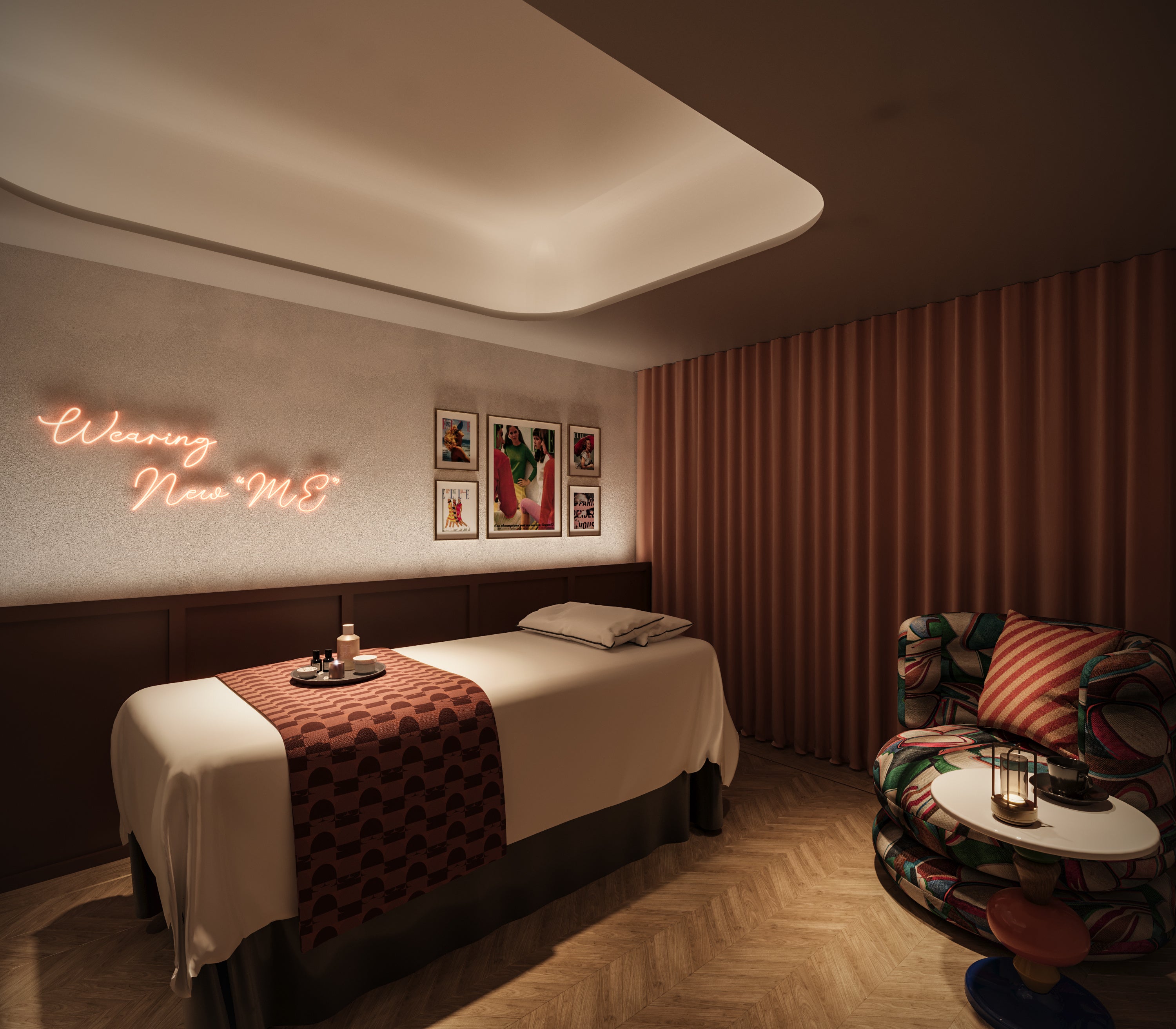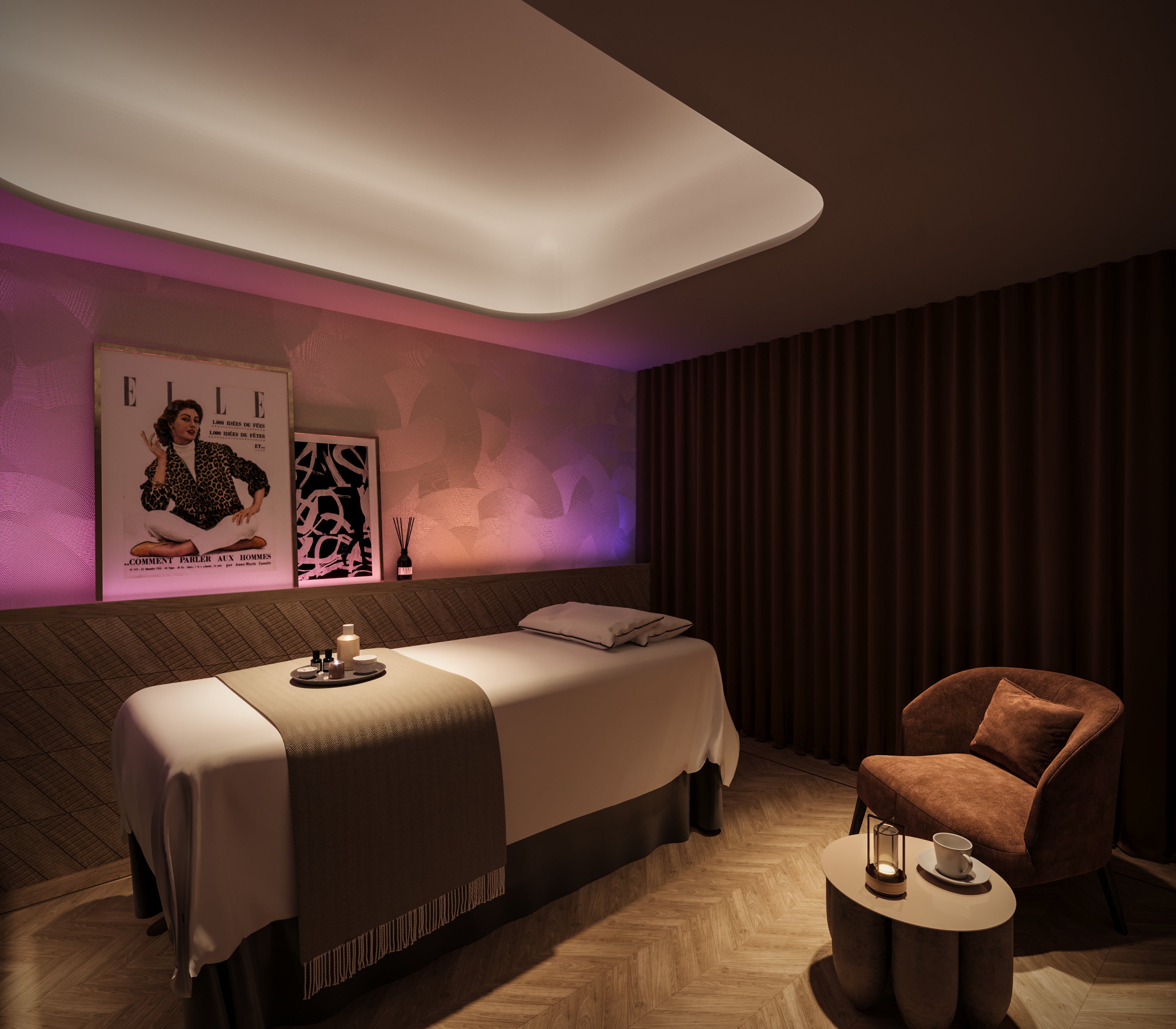 「ELLE SPA」では、フランスの「アール・ド・ヴィーヴル(生活芸術)」の精神を体現し、パリジェンヌのライフスタイルやワードローブからインスピレーションを得た、4つの異なるコンセプトを持つ空間をご用意しております。