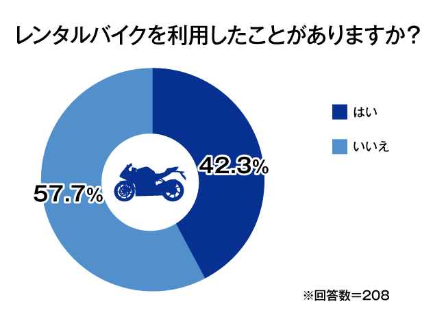 バイクを利用する方もしくはこれから利用する予定の方の中で、レンタルバイクがあることを知っている方の42.3%は「レンタルバイクを利用したことがある」と回答した。