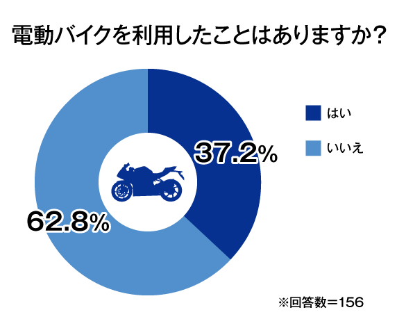 ・バイク利用者の中で、「電動バイクを利用したことはある」方は約4割弱。