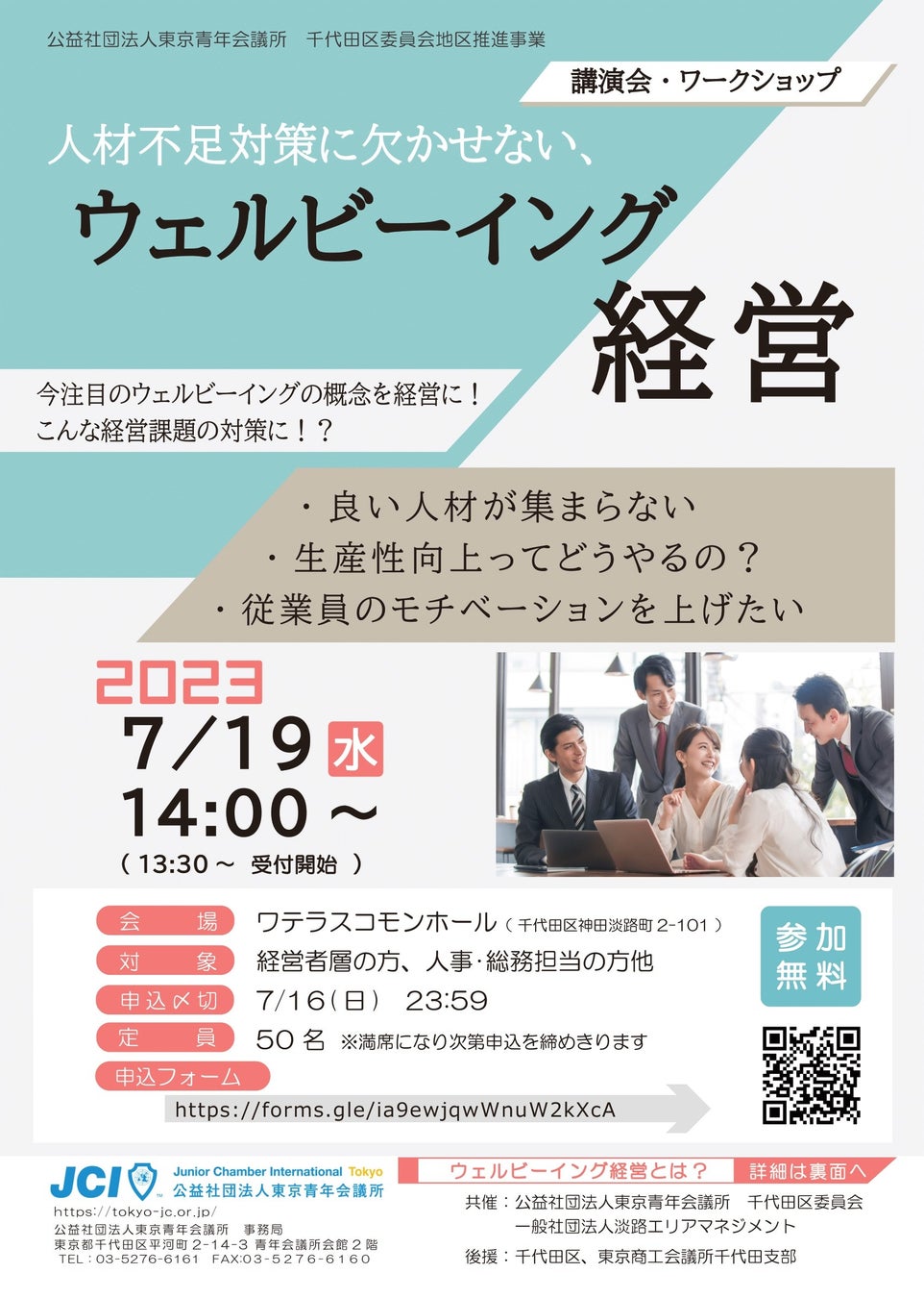 7月19日(水)14:00~開催!中小企業経営者必見!【人材不足対策に欠かせない、ウェルビーイング経営】講演会・ワークショップ開催!新御茶ノ水駅から徒歩2分・参加費無料・スタートブック無料配布