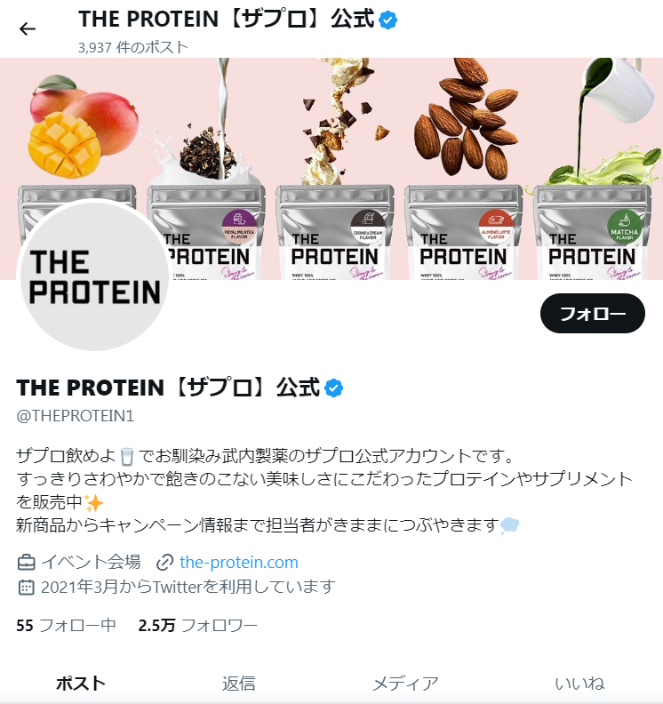 ①X(旧Twitter)@THEPROTEIN1のアカウントをフォロー