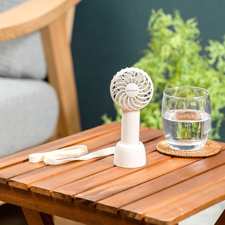持ち歩きのストレスフリーな超小型・超軽量!2023年夏の新作「充電式ミニハンディファン スタンド&ネックストラップ付」がplus more(プラスモア)から新登場。
