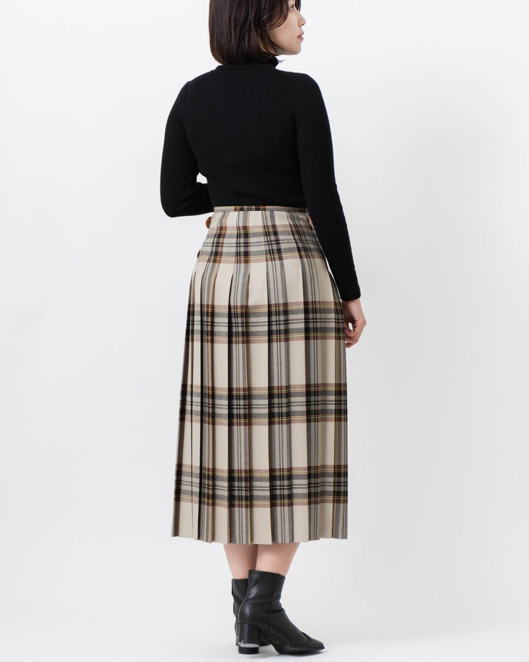 ベルトで留めて着る、時代に左右されないクラシカルなキルトスカートを豊富なウエストサイズ展開でご紹介します。