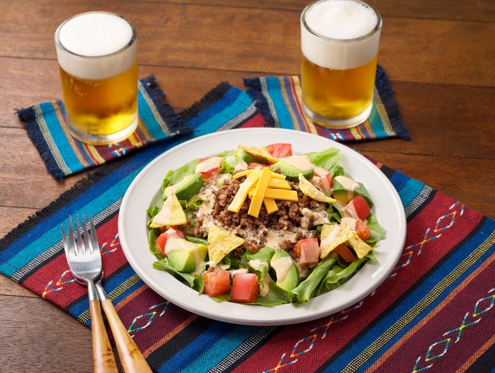 「SSK TACO SALADドレッシング」は、ハラペーニョ、コリアンダー、チポトレ、クミン等の香辛料を効かせた、ピリッと辛く、スパイシーでクリーミーなドレッシングです。サラダに絡みやすいクリーミー仕立てです。ピリッと辛くスパイシーなので、ビールのおつまみとして野菜がたくさん食べられます。