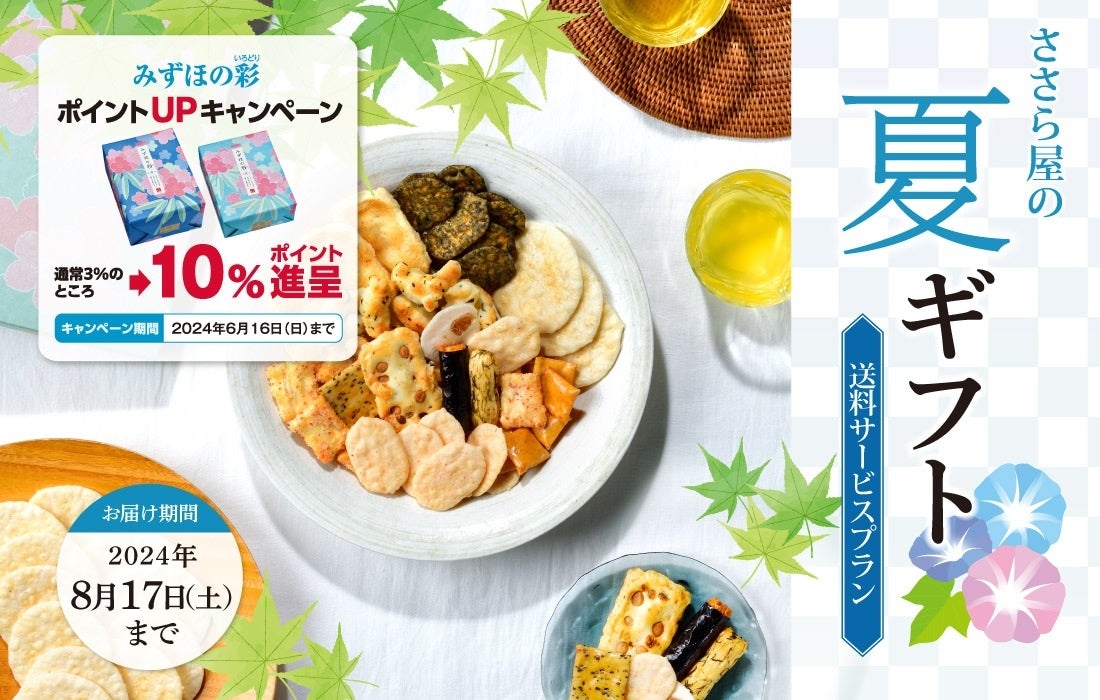 ささら屋 2024年夏ギフトの発売開始!6月16日までのご注文でささら屋ポイント10%進呈の「みずほの彩ポイントUPキャンペーン」を実施中 日の出屋製菓産業