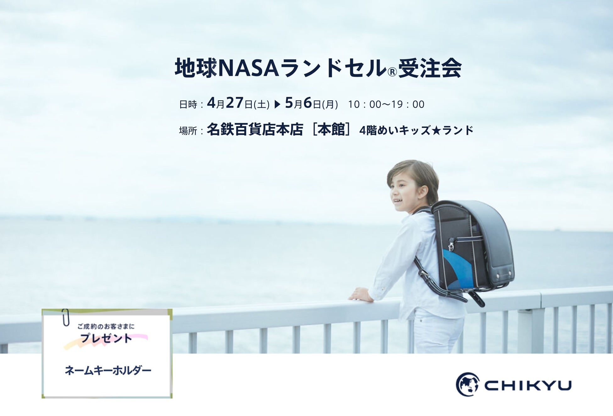ランドセルの企画・販売を行うCHIKYU株式会社(旧池田地球株式会社、東京都港区、代表取締役:村尾光一)は、愛知・名鉄百貨店本店にて「地球NASAランドセル® 受注会」を開催いたします。
