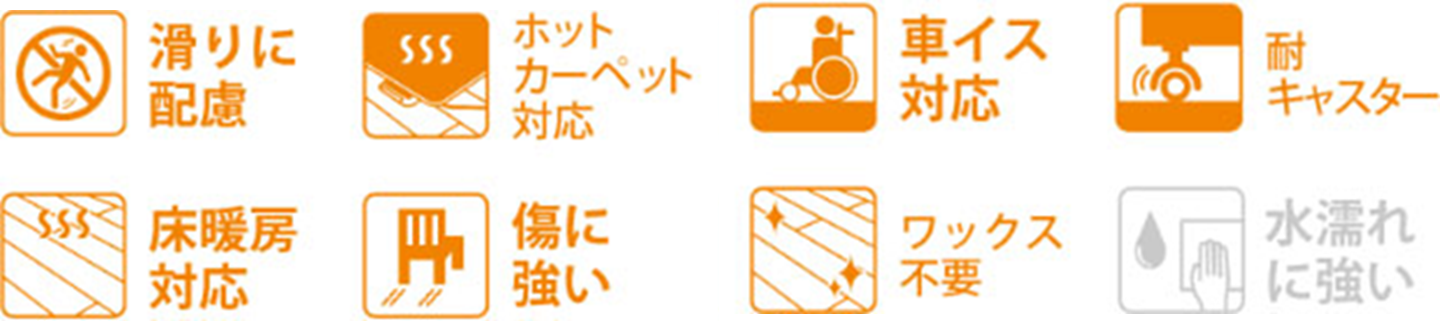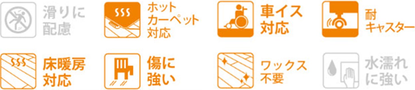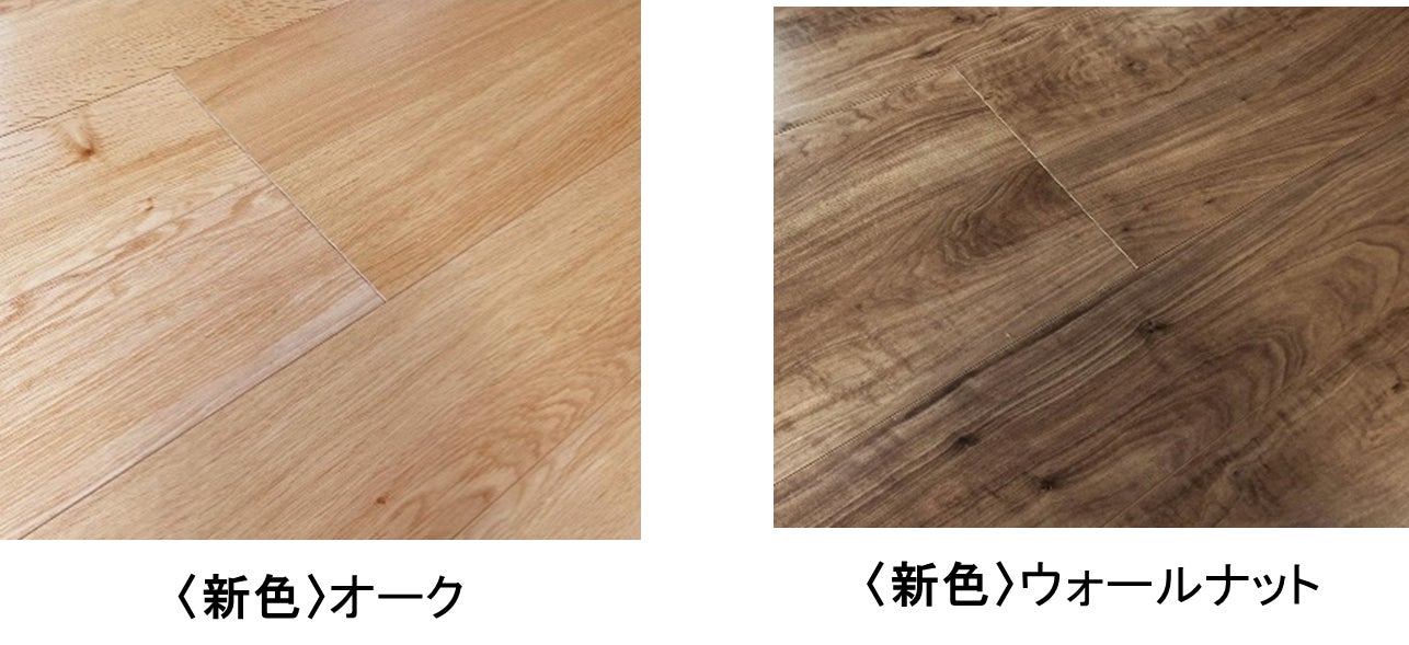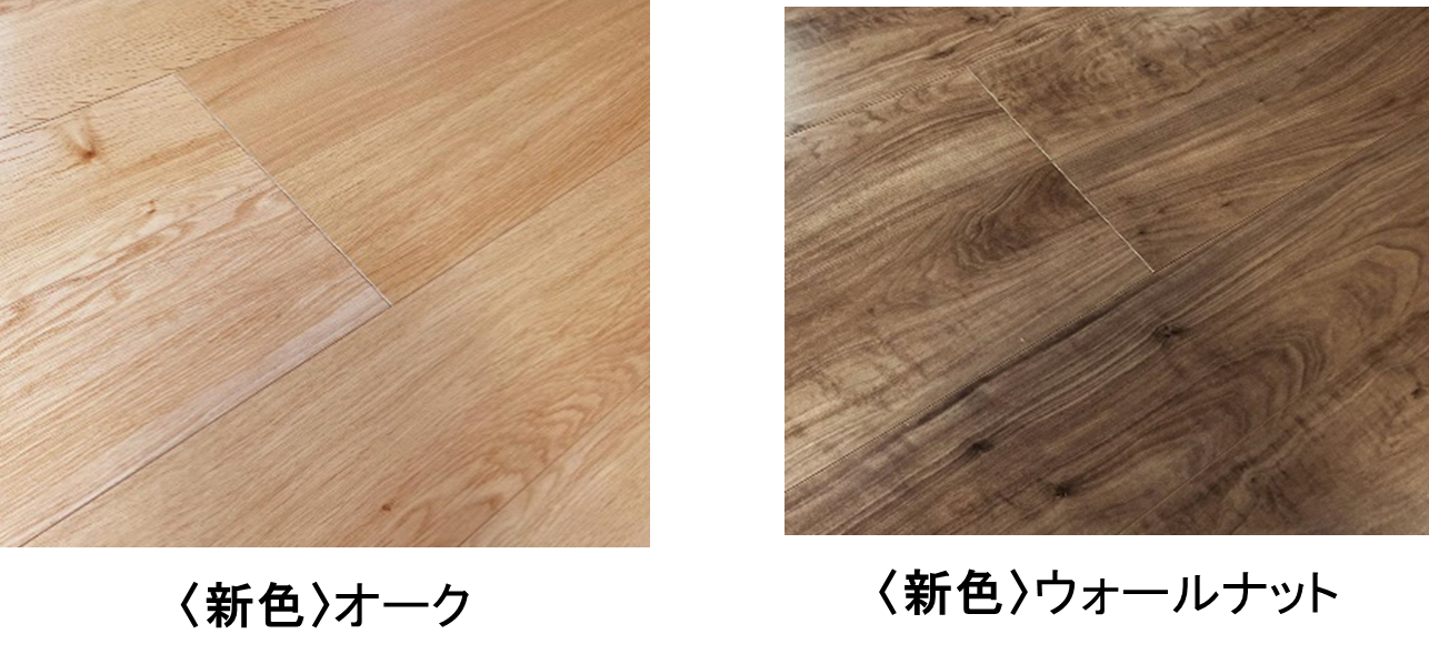 植林木※を使った環境にやさしいフロア材。環境に配慮した素材にもかかわらず、傷や汚れに強く、ホットカーペットや床暖房にも対応しています。カラーは2色展開でどちらも今回からの新色。自然な木を感じられる暖かいカラーです。