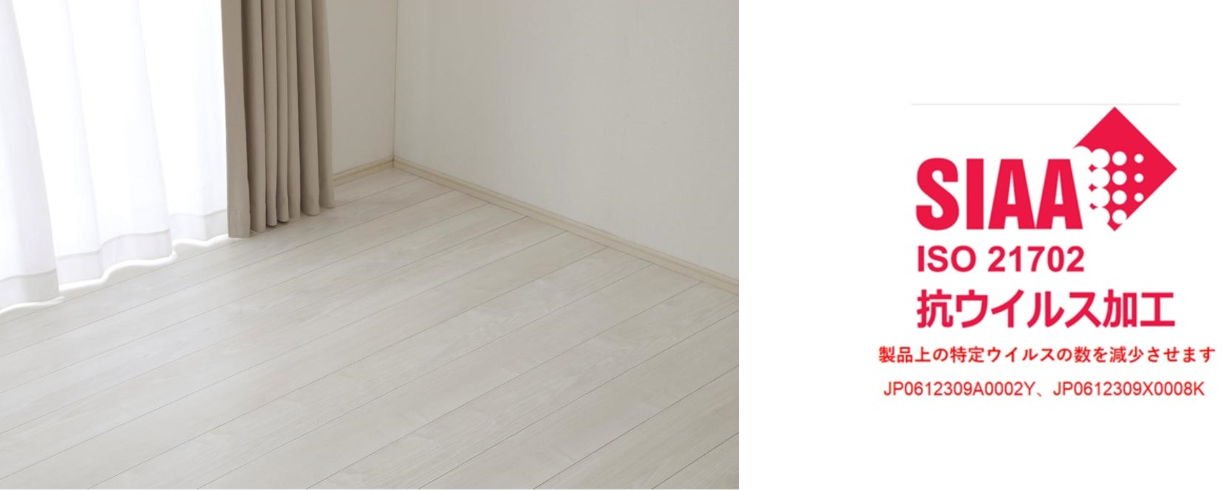 抗ウイルスの機能をもったフロア材。お手入れが簡単な木目柄は3色展開でご用意しております。全てのカラーが新色で、ネオホワイトとミルベージュ、ティーブラウンの落ち着くカラーです。ナチュラルテイストがお好きな方にはこちらのフロア材がおすすめです。