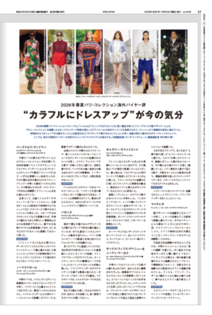 10月20日発売の「WWDJAPAN」は、2026年春夏パリ・ファッション・ウイーク特集号です。