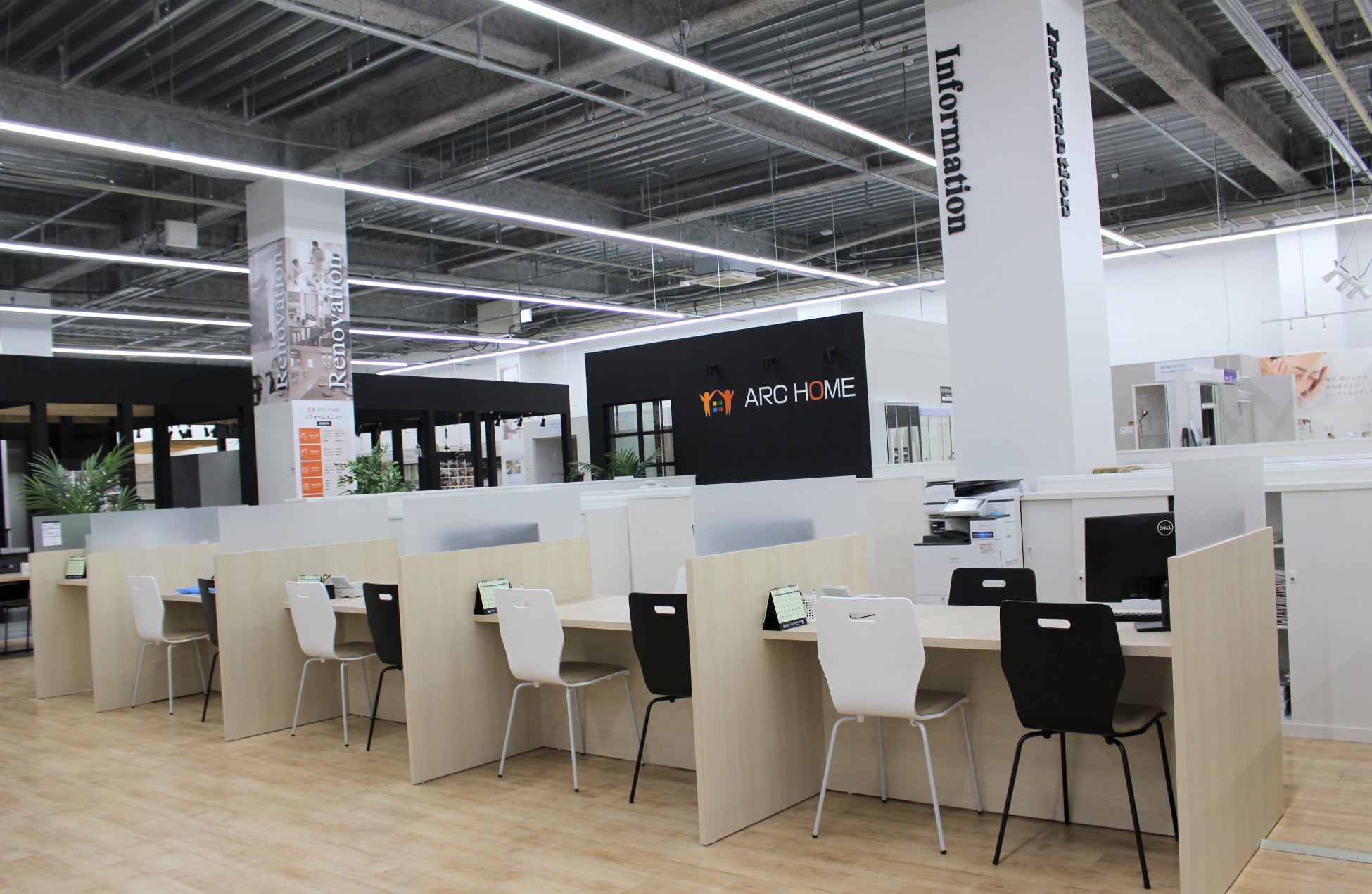 リフォームコーナーの「アークホーム」では、経験豊かで専門知識が豊富なスタッフや建築分野の有資格者を配置し、気軽に立ち寄れて安心して相談できるリフォームショールームを設けております。