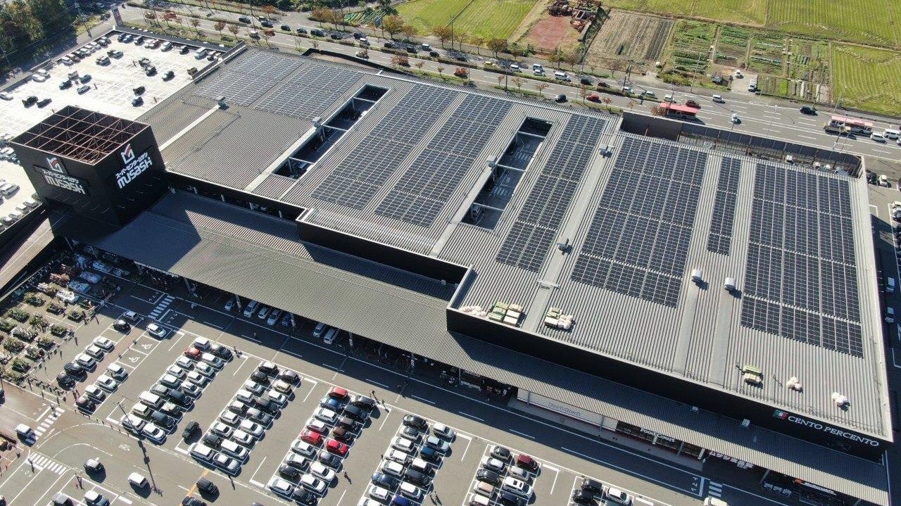 当施設では、サステナビリティの観点から店舗施設の屋根に太陽光パネルを設置いたします。使用電力を再生可能エネルギーに切り替えることで、年間約2,100トンのCO2排出量削減を見込んでいます。