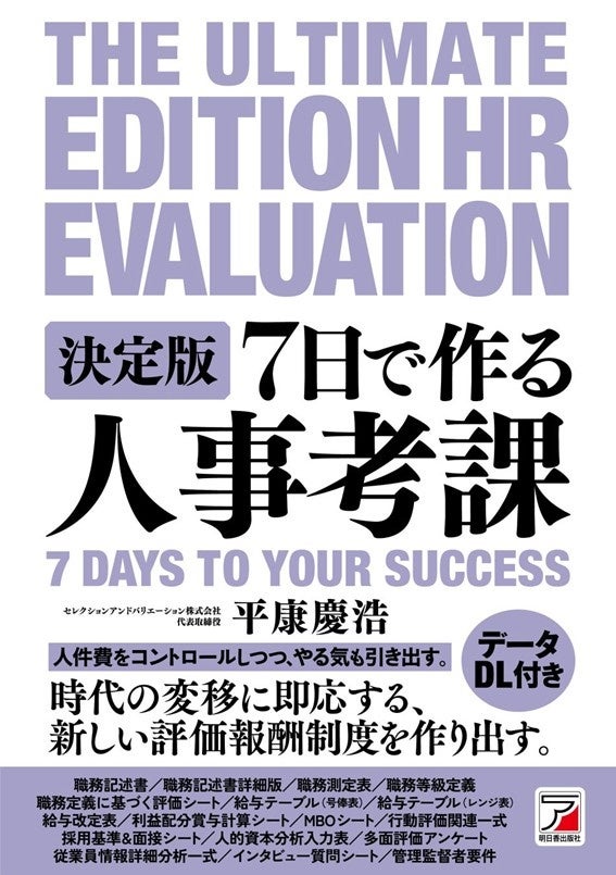 セレクション&バリエーション株式会社は、人事評価制度の設計を短期間で実現する実践書『決定版 7日で作る人事考課』を2025年2月14日(金)に発売いたしました。本書は、複雑化する企業の人事評価制度を、7日間という短期間で構築および改定ができる手法を解説し、企業の生産性向上と公正な評価の実現をサポートします。