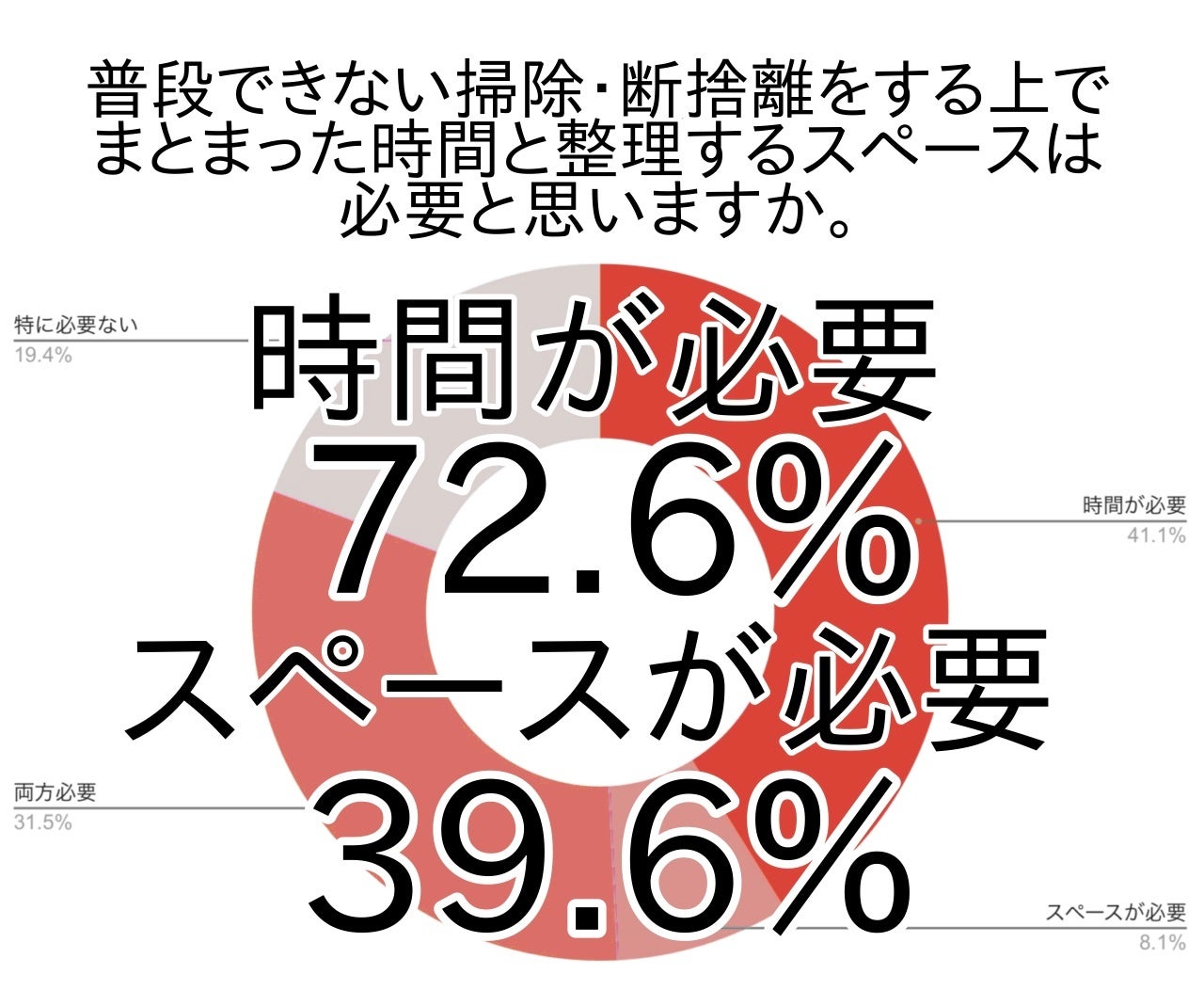 そこでアンケートでは、普段できない掃除・断捨離をする上でまとまった時間と整理するスペースは必要と思うか尋ねました。