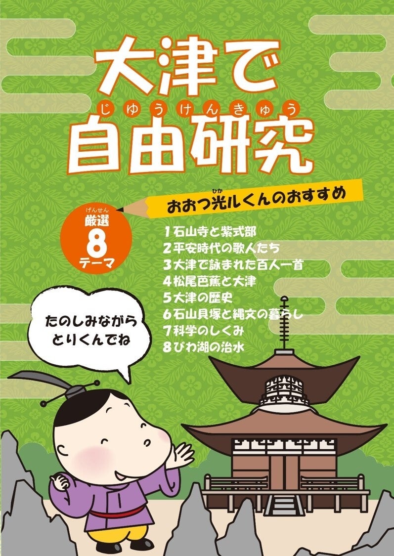 家族で楽しく取り組める、大津ならではの自由研究のテーマをとりまとめたパンフレットを作成。テーマは「歴史・文学・芸術・科学・環境・植物・交通」と分かれており、お子様の興味に応じて選定いただけます。
