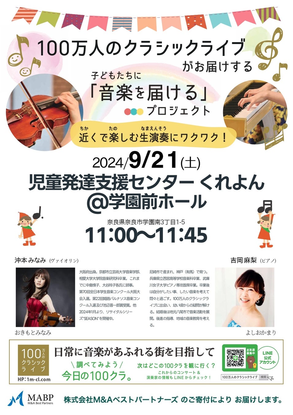 【M&Aベストパートナーズ×100万人のクラシックライブ】9月21日(土)に奈良市西部会館市民ホール 学園前ホールにて、クラシックライブを開催!