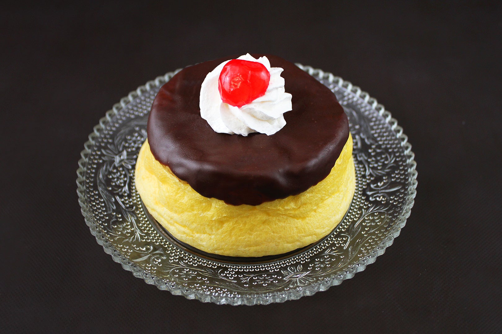 ふんわりやわらかい菓子生地にプリン風味のクリームを包み、ホイップクリームとドレンチェリーをトッピングしてプリンのように見立てました。純喫茶に並んでいるようなレトロで可愛らしい見た目と、プリンの甘く優しい風味に心がときめく一品です。