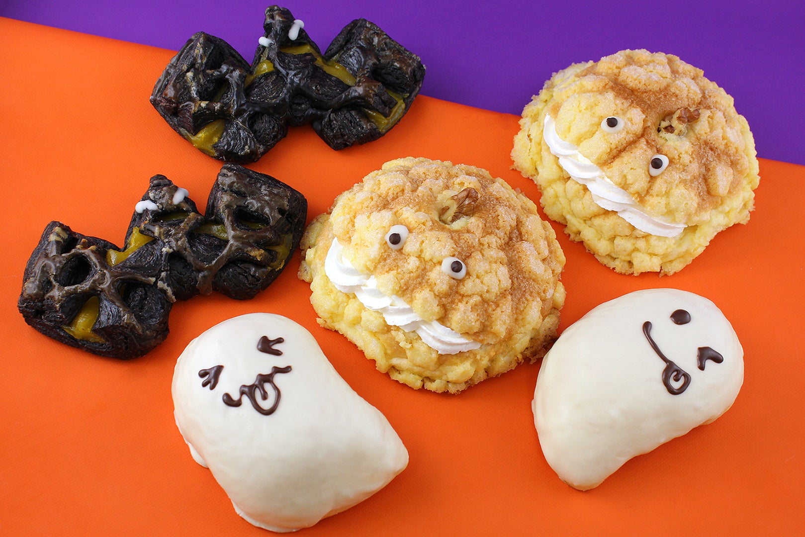 たまごのコクと、北海道産牛乳のコクを生かした、カスタードクリームを包んだクリームパンをハロウィンおばけに見立てました。こだわりのクリームが詰まったおばけたちは、とってもお茶目でキュートな表情!ぜひ、お気に入りの子を見つけてみてください。