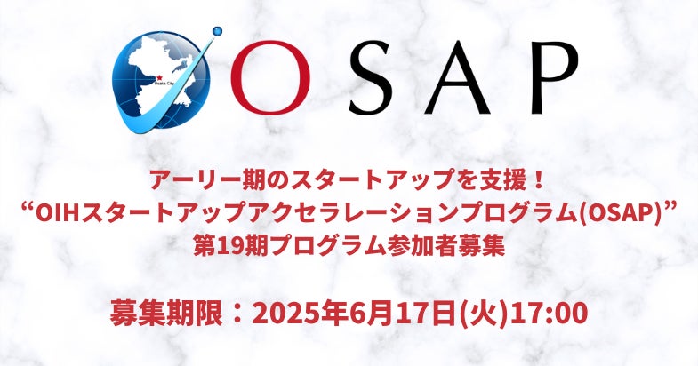 アーリー期のスタートアップを支援「OIHスタートアップアクセラレーションプログラム(OSAP)」第19期募集