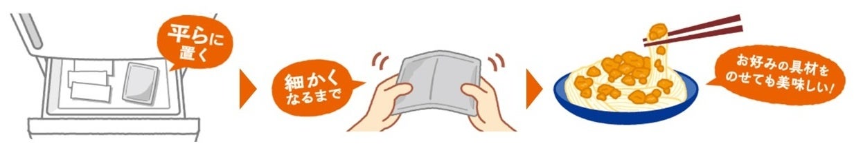 ③本品を袋のまま細かく割りほぐし、そうめんの上にかける。全体を軽く混ぜ、氷を崩しながら食べる。