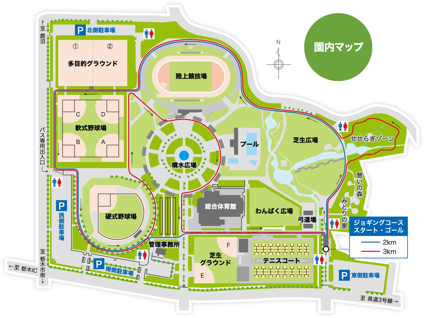 駐車場:栃木市総合運動公園内の駐車場をご利用ください