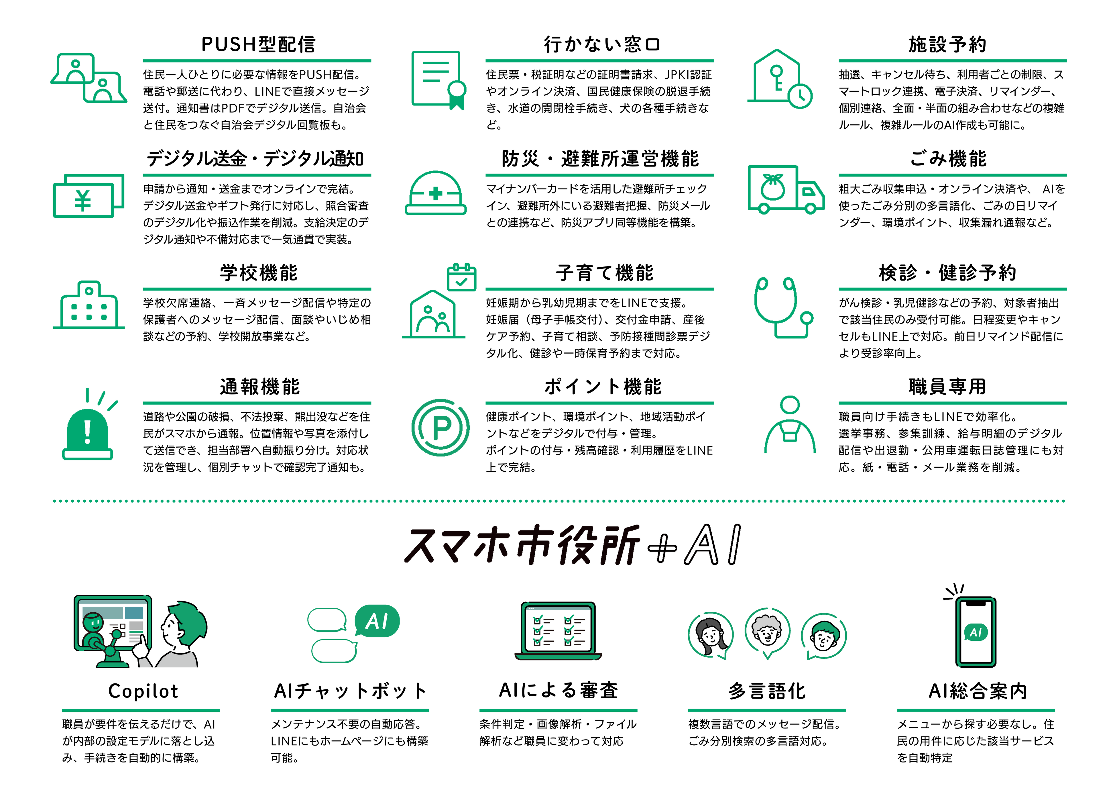<スマホ市役所 AI Optionで利用可能な機能>