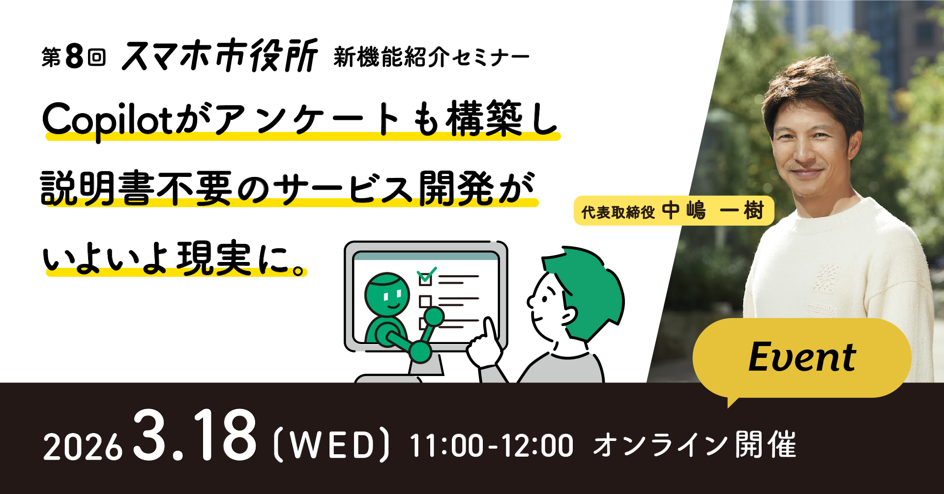 3月18日(水)、新機能紹介セミナー開催。Copilotがアンケートも構築し、説明書不要のサービス開発がいよいよ現実に。