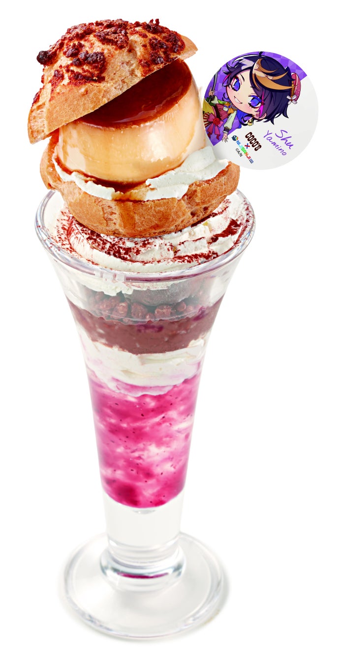 - 闇ノシュウのYummyな闇色シュウプリンパフェ~ブルーベリーソースもおいしゅう~ 990円(税込1,089円)