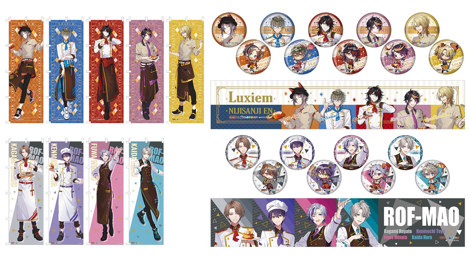 通販サイトのゼンショーネットストアでは、各ライバーの描き下ろしイラストを使用した、高さ180㎝の「のぼり」や「ビッグ缶バッジセット」、ユニットデザインの「マフラータオル」を受注販売します。