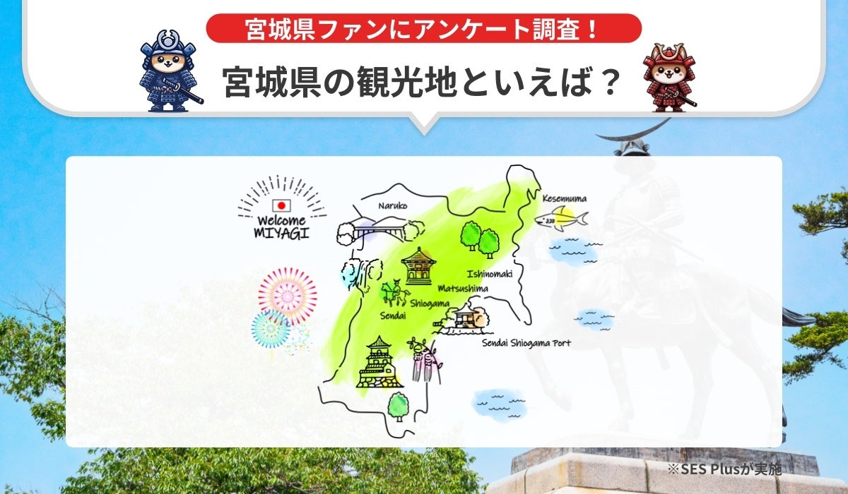 東京都中央区のIT企業「株式会社ファーストイノベーション」(代表取締役社長:木ノ根雄志、以下ファーストイノベーション)は、2024年7月1日から2024年8月31日まで、SNSとWEBを活用して、宮城県の魅力を発信することで「地域PR」を実現し、宮城県でいただいた皆様との"つながり"で「地域の課題解決」を"応援"する官民連携の地方創生キャンペーン「宮城つながり応援」の活動の一環で、アンケート調査サービス「SES Plus」と連携し『宮城県の観光地』に関する人気調査を実施いたしました。