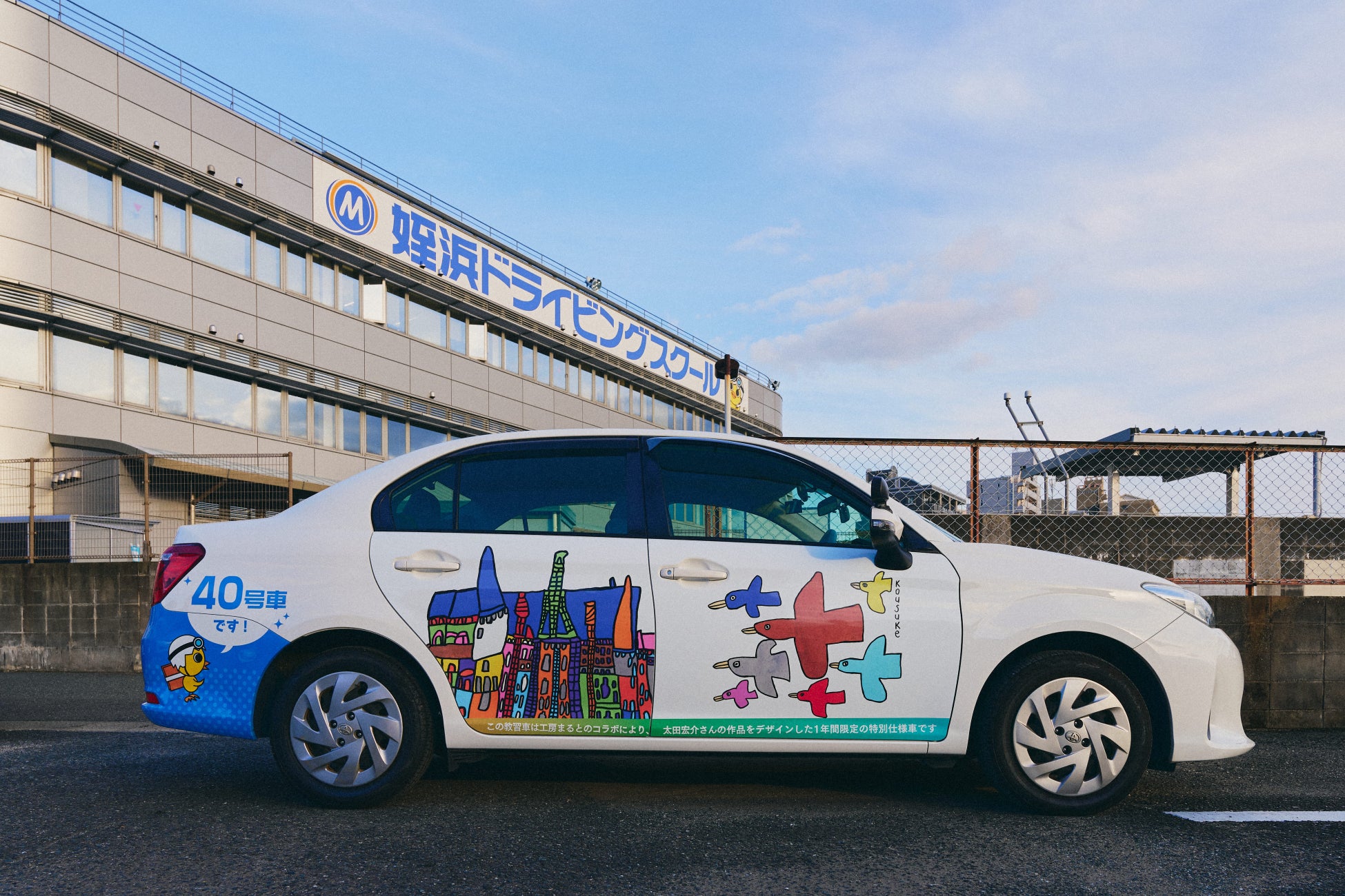【工房まる×姪浜ドライビングスクール】走るアートギャラリーが福岡の街へ。アーティスト・太田宏介さんの作品を乗せた特別ラッピング教習車が誕生!