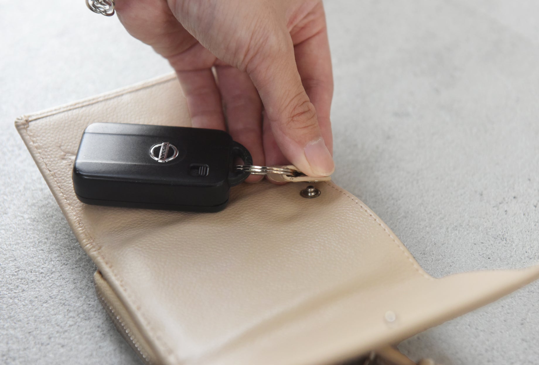 そして2つめのキーリングは小銭入れの内側に。