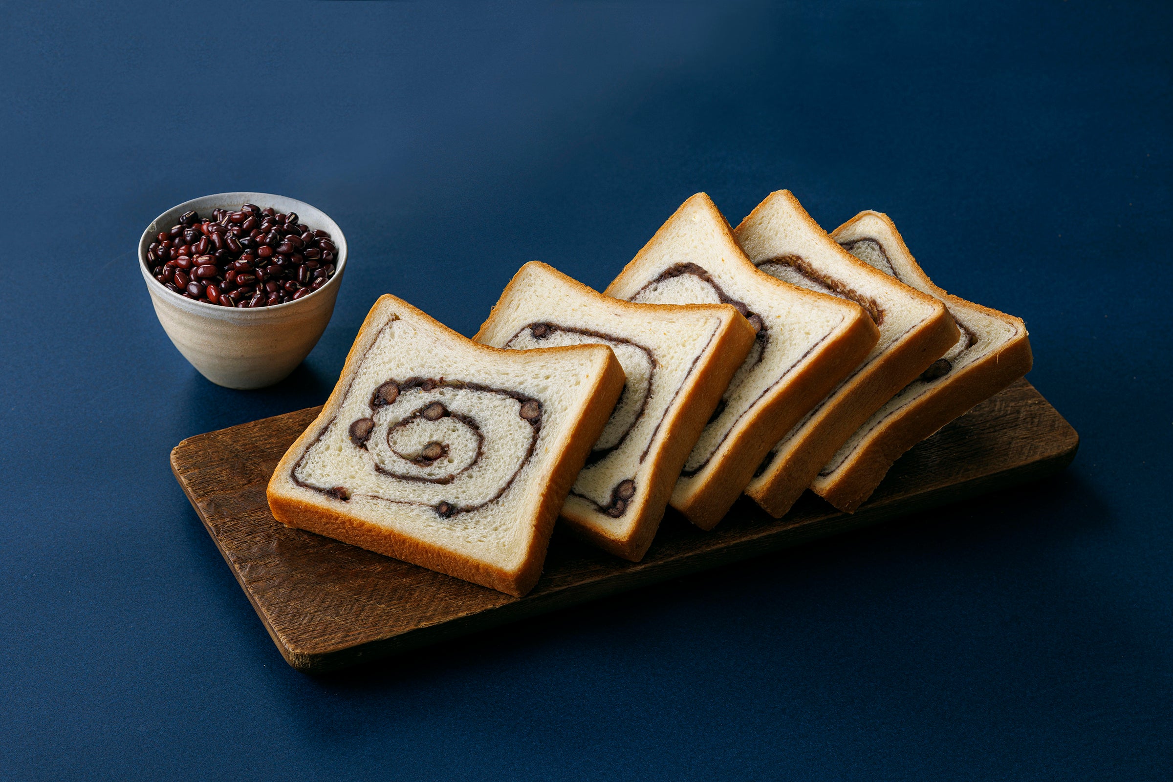 豆の味わいがしっかりしたつぶあんと、なめらかなこしあんを合わせた味わい深いあんを巻き込み、きれいな渦巻き模様に仕上げました。一緒に巻き込んだ「北海道産あかね大納言」は、食感のアクセントと豆本来の甘みも感じられます。