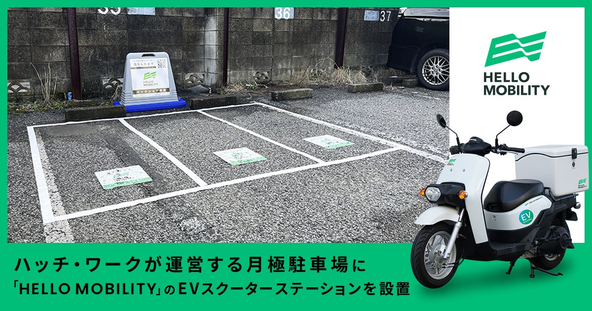 ハッチ・ワークが運営する月極駐車場に「HELLO MOBILITY」のEVスクーターのステーションを設置