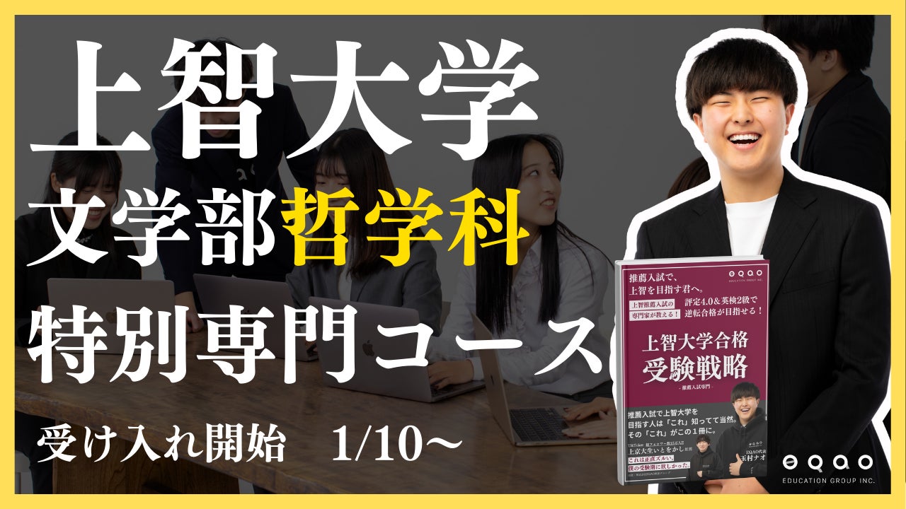 【上智大学 哲学科】公募推薦特化 上智大学哲学科専門コース リリース!上智大学哲学科目指すなら、上智大学との繋がりが強いEQAO一択!業界にトップクラスに上智大学哲学科の推薦入試に強い塾EQAO