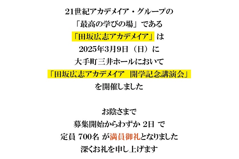 「田坂広志アカデメイア 開学記念講演会」