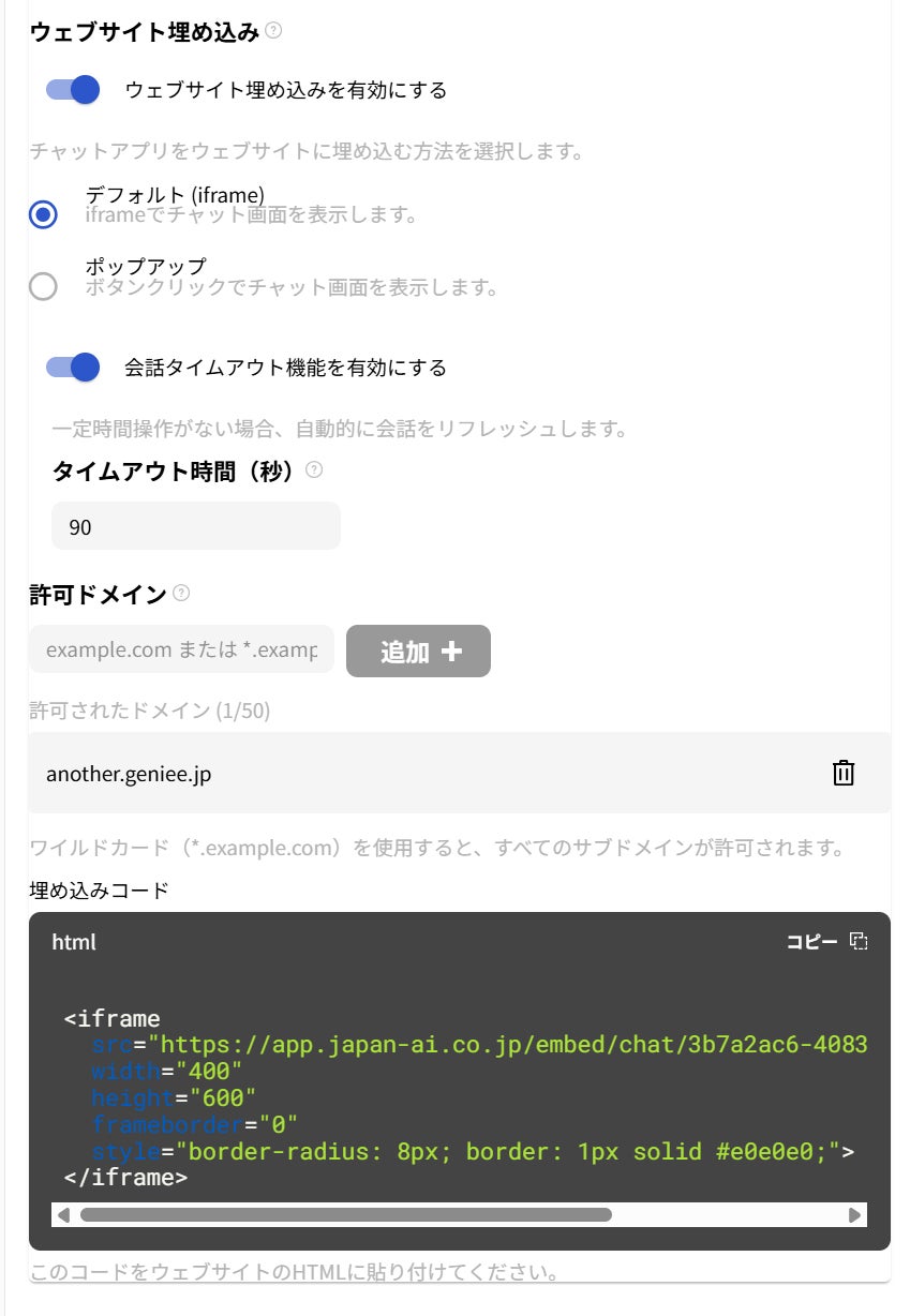 AIエージェントを作成する際に、サイトのドメイン設定を入力するだけで設定が完了
