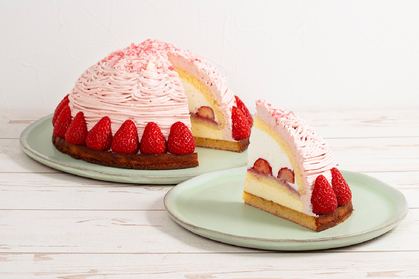 酸味と甘みが絶妙なバランスの栃木県限定生産の大粒苺「スカイベリー」のズコット、可憐な見た目に心惹かれるタルトやモンブランが新登場。