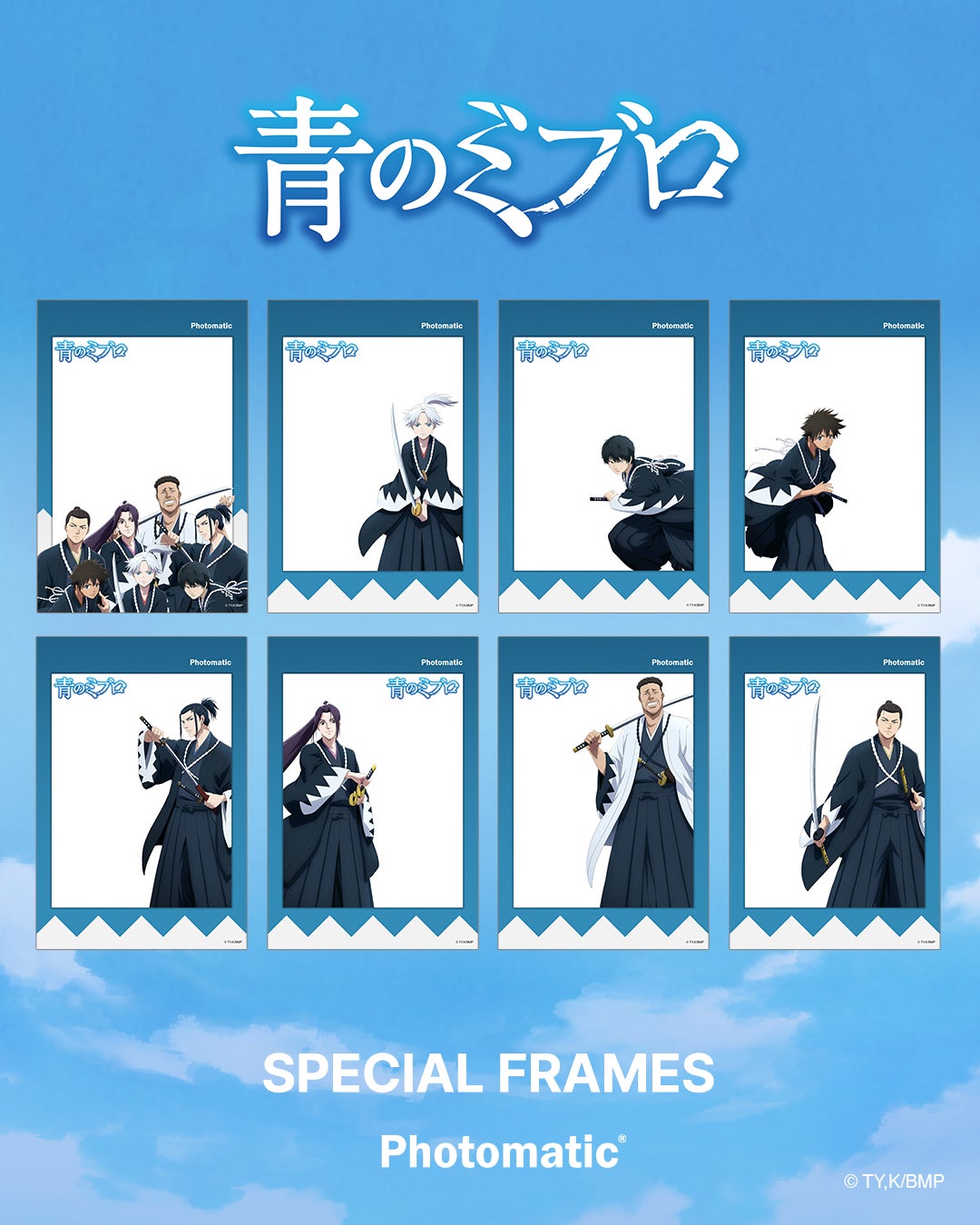 キタムラ・ホールディングス グループのピックハイブ株式会社(本社:東京都新宿区、代表取締役社長 兼 COO:大迫 由典)が運営するセルフフォトブランド「Photomatic(読み:フォトマティック)」は、TVアニメ『青のミブロ』とのコラボレーションを2026年2月2日(月)より期間限定で実施します。今回のコラボレーションは、現在放送中のアニメ第二期『青のミブロ—芹沢暗殺編—』が盛り上がりを見せるタイミングで、全国各地のファンが作品の世界観をより身近に体験できる機会としてフォトブースをご利用いただけます。コラボレーションフレームは全18種。ぜひ期間中にお好きなフレームで撮影をお楽しみください。