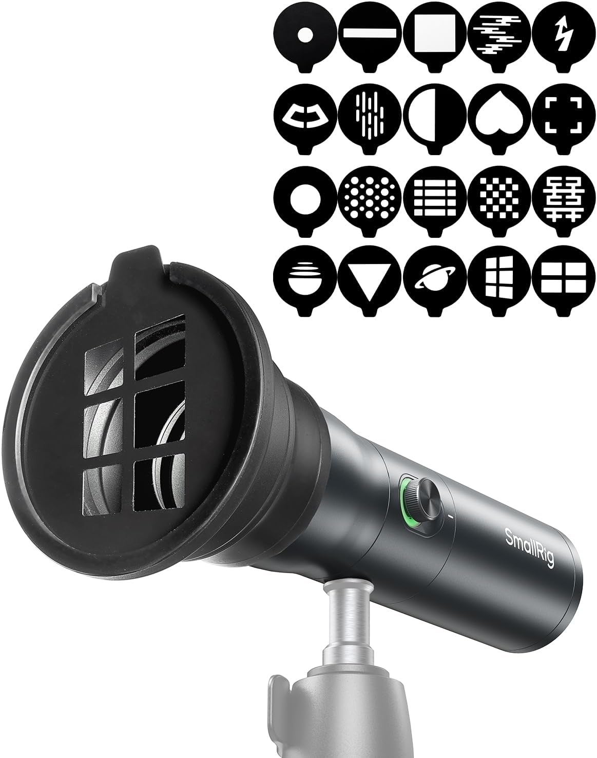 4色LED搭載(夕焼けオレンジ・青・白・赤)、最大出力10W、CRI Ra≥96、TLCI≥98、1,570lux@0.5m/5600Kを実現し、多様な撮影ニーズに対応。20種類のゴボ付属で、豊富な雰囲気投影効果をサポートし、クリエイティブな表現を可能にします。