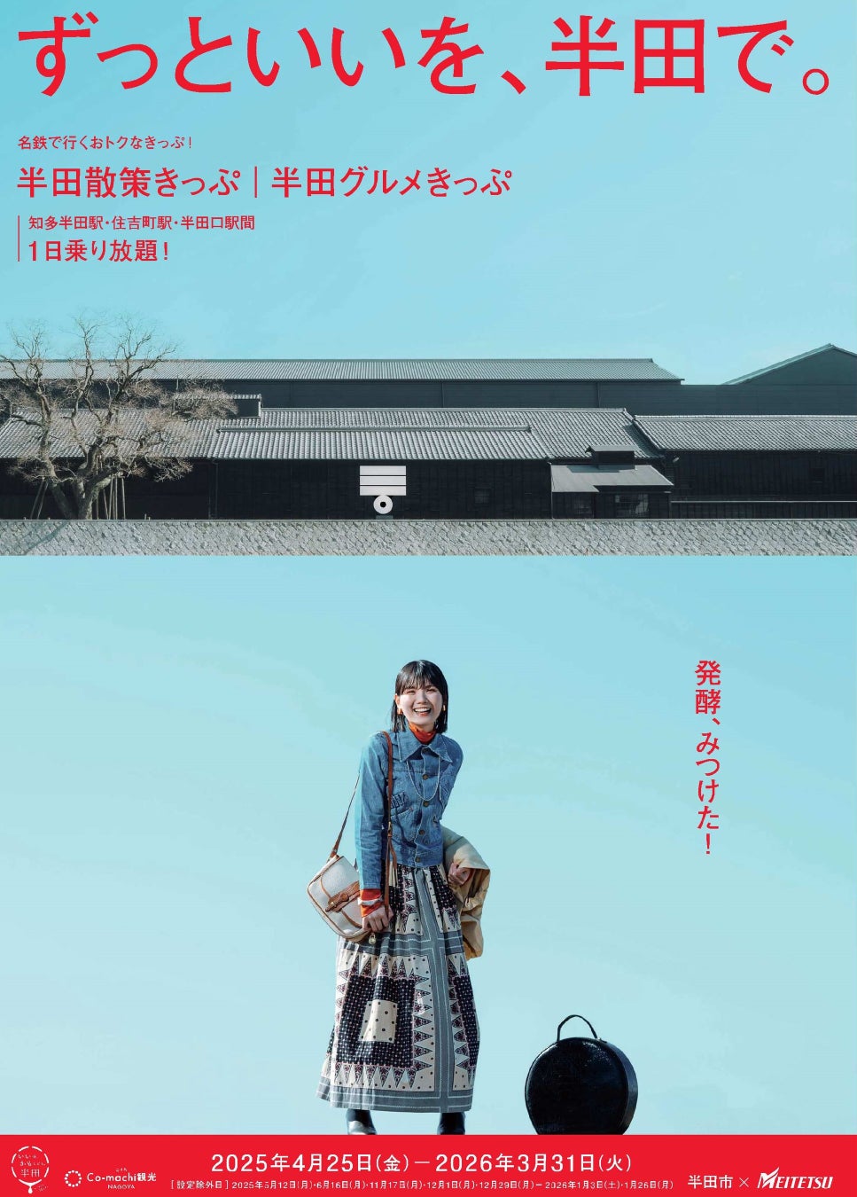 半田赤レンガ建物を楽しむことができる企画乗車券『半田散策きっぷ』『半田グルメきっぷ』を発売します。毎年好評の名鉄タイアップキャンペーンをリニューアルし、半田市を堪能できる特別切符を販売します。また、帰りの乗車券を利用することで、知多半田駅、住吉町駅、半田口駅間が1日乗り放題になり、これまでよりも市内を周遊しやすくなりました。半田市を象徴するキーワードである『発酵』の魅力とその味わいを楽しみ、お気に入りの半田スポットを見つけてください!