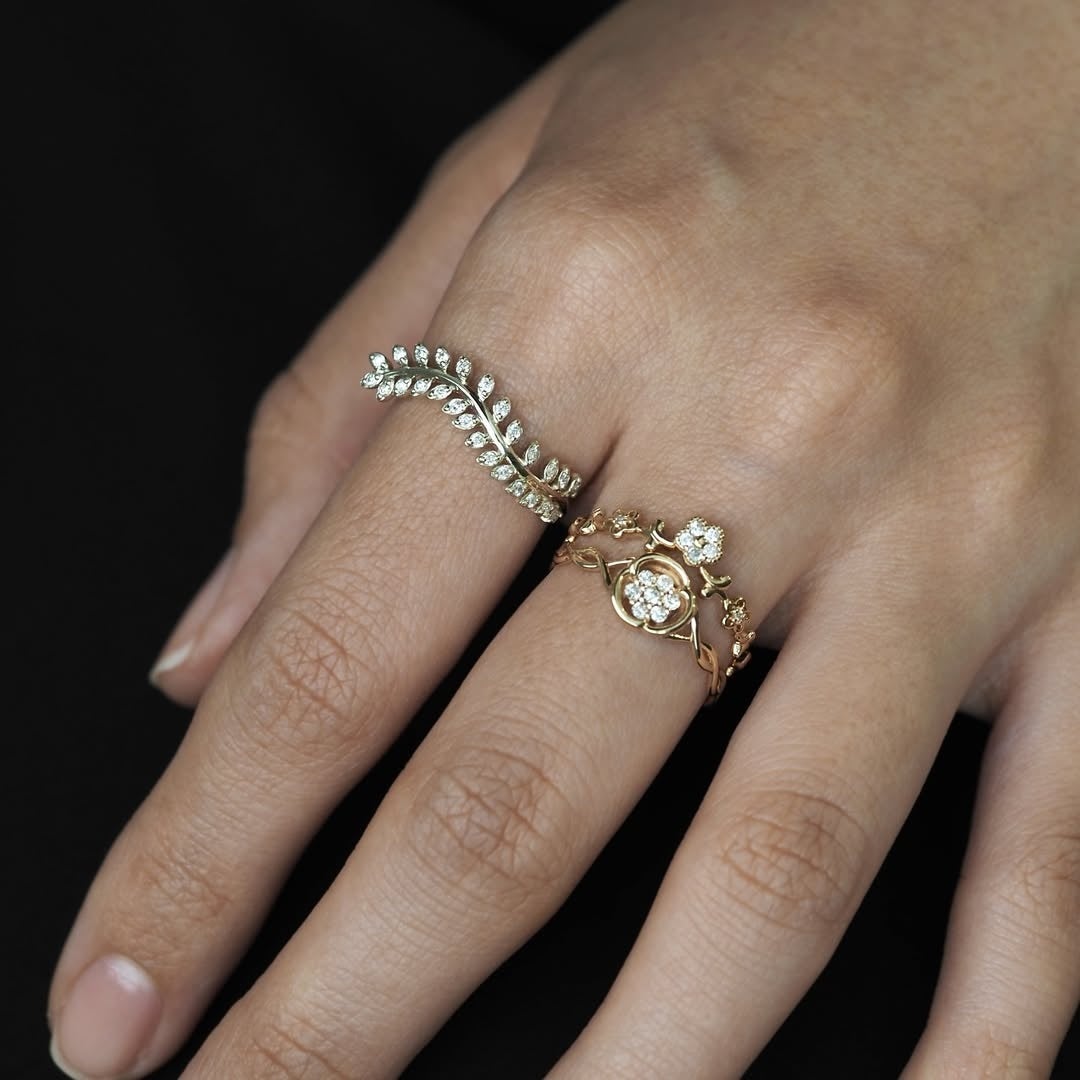 今回のフォトブックでも大きく取り上げられている「ボタニカル・シリーズ」。その世界観を象徴するジュエリーが、6月より福岡店にも登場いたします。自然の造形や植物の息吹をモチーフに、繊細な手仕事で仕立てた2つのリング。やわらかな色彩や、風に揺れるような有機的なフォルムが、指先に静かな存在感をもたらします。デザインの美しさだけでなく、着け心地や細部の仕上げにもこだわりを詰め込んだ新作リング。装いにさりげなく自然の風景を映し込む、そんな一本をどうぞお手にとってお確かめください。
