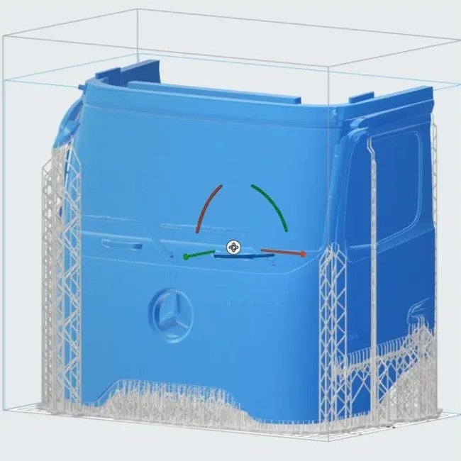 こうした課題に対し、制作チームはFormlabsの大型3Dプリンター「Form 3L」※を活用しました。Rigid 4000 Resinを使用して作られた精密な3Dモデルは、新型車両「eActros 600」を再現するだけでなく、撮影現場での実践的な活用を可能にしました。