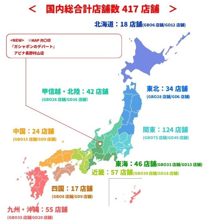 株式会社バンダイナムコエクスペリエンスと株式会社バンダイナムコアミューズメントは、カプセルトイ専門店『ガシャポンのデパート』アピナ長野村山店を、2025年10月24日(金)、大型アミューズメント施設「アピナ長野村山店」(長野県長野市)内にオープンします。