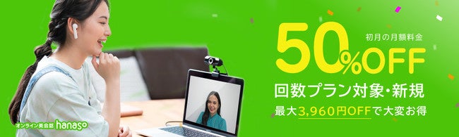 株式会社アンフープ(所在地:静岡県富士市、代表取締役社長:重森 渉)がサイト運営する、無料通話ソフトZoomまたはSkypeを利用したオンライン英会話スクール「hanaso」では、2022年5月10日(火) ~6月7日(火)に、新規入会者を対象として回数プラン初月月額料金(4,400円~7,920円)(税込)が半額&早期入会特典として5月24日(火)までのご入会でレッスンチケット1枚(500円相当)をプレゼントの「新緑キャンペーン2022」を実施いたします。