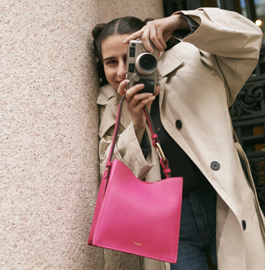 します。フルラのアーチロゴをモダンにアレンジした“Arcosfera”メタルパーツが特徴的なレザーボストンバッグは、ブランデーブラウン、コローラピンク、アッシュグレー、オートホワイト、コーラルレッドなど、さまざまな色合いでフルラ ヌヴォラを表現しています。