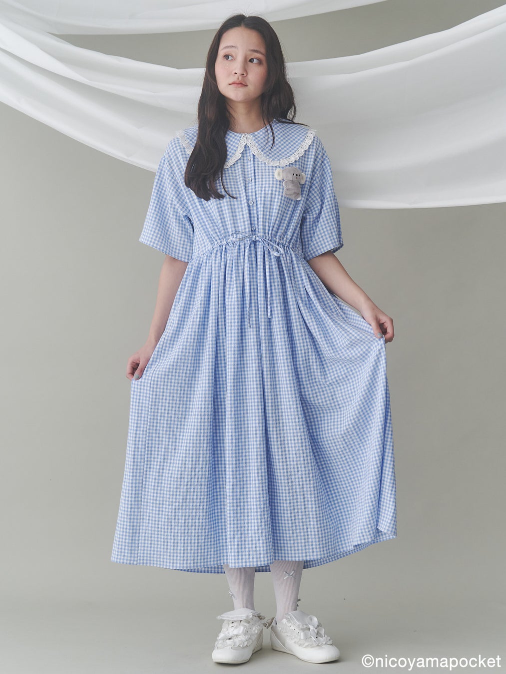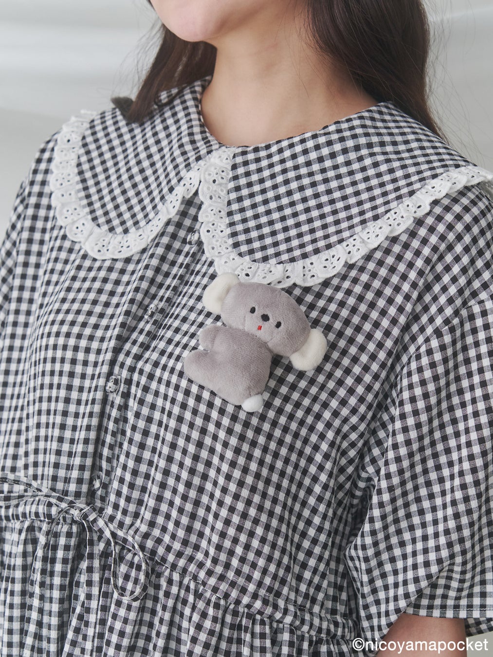 商品名:【にこやまポッケ】おすわりコアラのぬいぐるみギンガムチェックワンピース