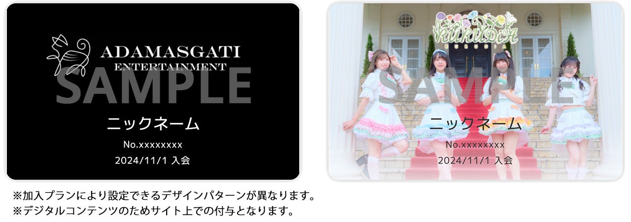チケット先行やオリジナルコンテンツなどの特典がお楽しみいただけます。今後もアダマスガティに所属のアイドルグループがファンクラブに順次参加予定です。