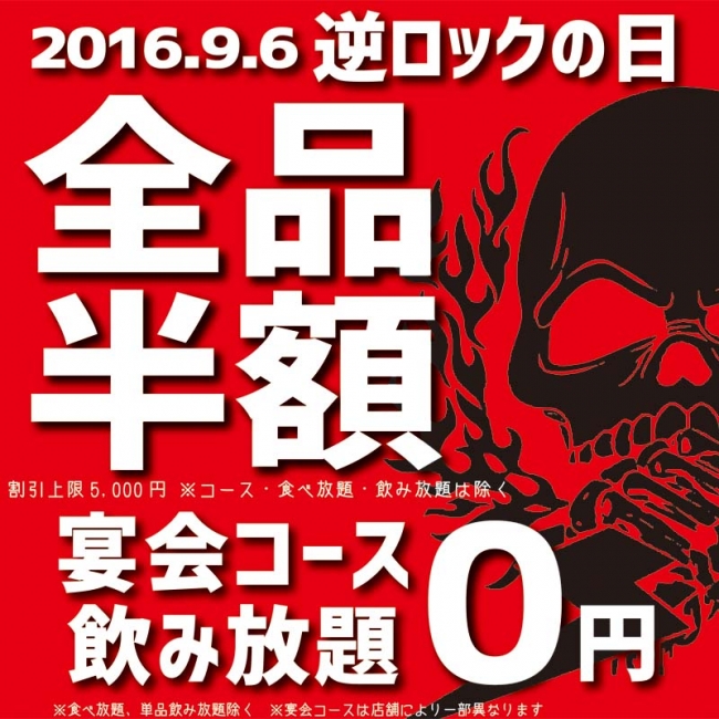 - 日本記念日協会 正式登録記念 9月6日「逆ロックの日」 全品半額イベント開催決定!